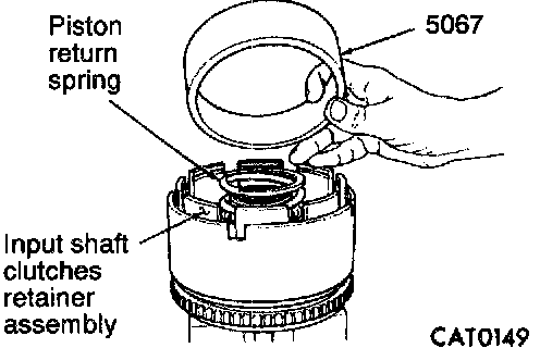 9. Install piston return spring. Install Seal Installer 5067. Coat Installer inner surface lightly with petroleum jelly. Place Installer into Input clutch assembly with its large inside diameter facing up.