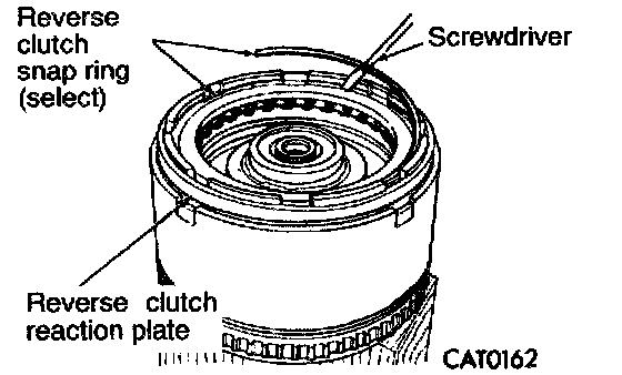 1. Tap down reverse clutch reaction plate to remove (or install) snap ring.