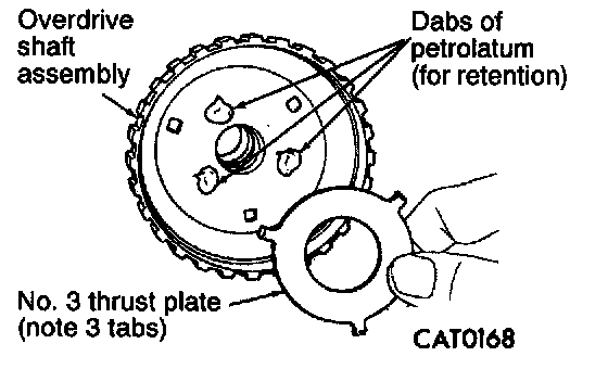 32. Stick No. 3 thrust plate onto overdrive shaft assembly with dabs of petrolatum.