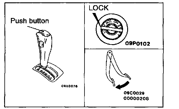 2. Check that, under the following conditions, the selector lever can be moved from the "P" position to any other position.