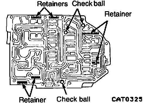 12. Remove separator plate from valve body. Remove O/D clutch check ball and oil screen.