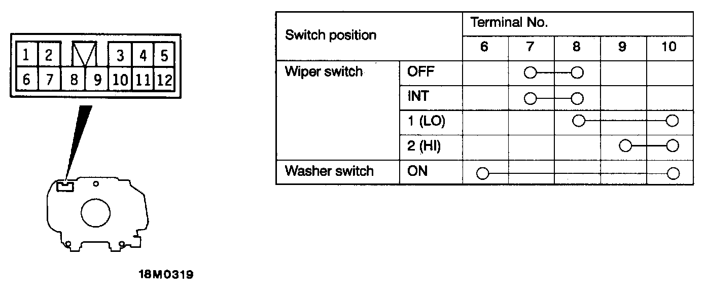 Windshield Washer Switch: Testing and Inspection