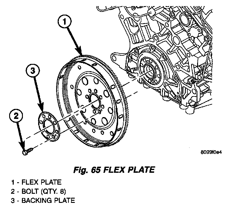 1. Position flex plate with backing plate on the crankshaft (Fig. 65).