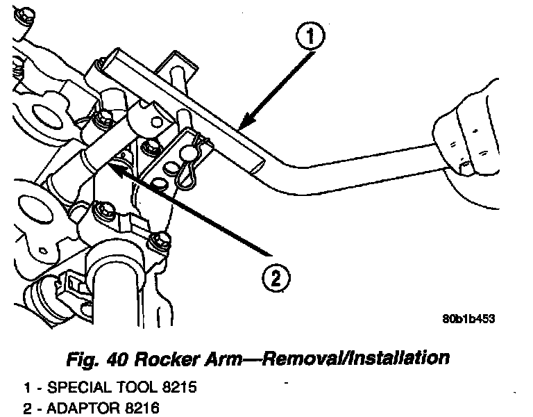 3. Using Special Tools 8215 and 8216 Adapter, depress valve spring only enough to install rocker arm (Fig. 40).