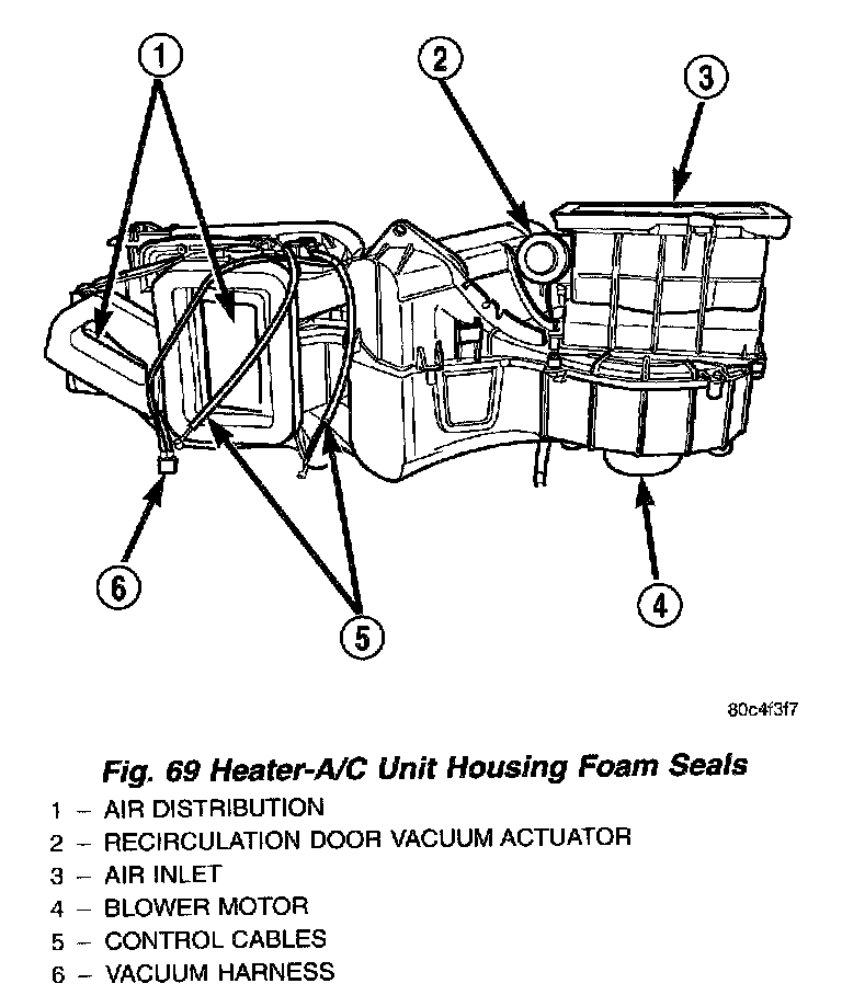 Fig.69 Heater-A/C Unit Housing Foam Seals: