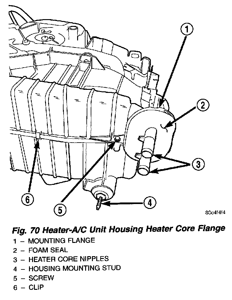 Fig.70 Heater-A/C Unit Housing Heater Core Flange: