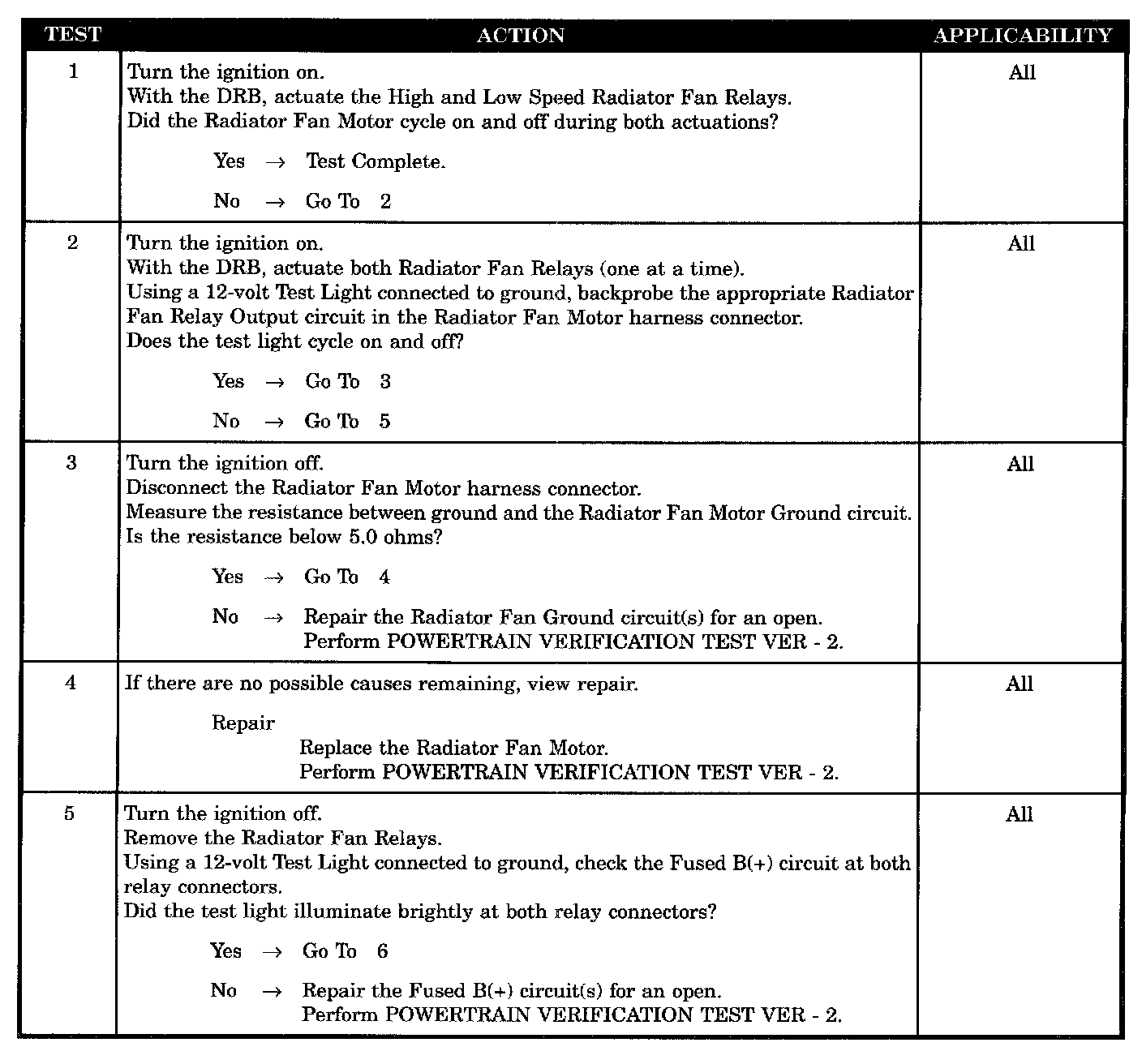 CHECKING RADIATOR FAN OPERATION WITH NO DTC'S