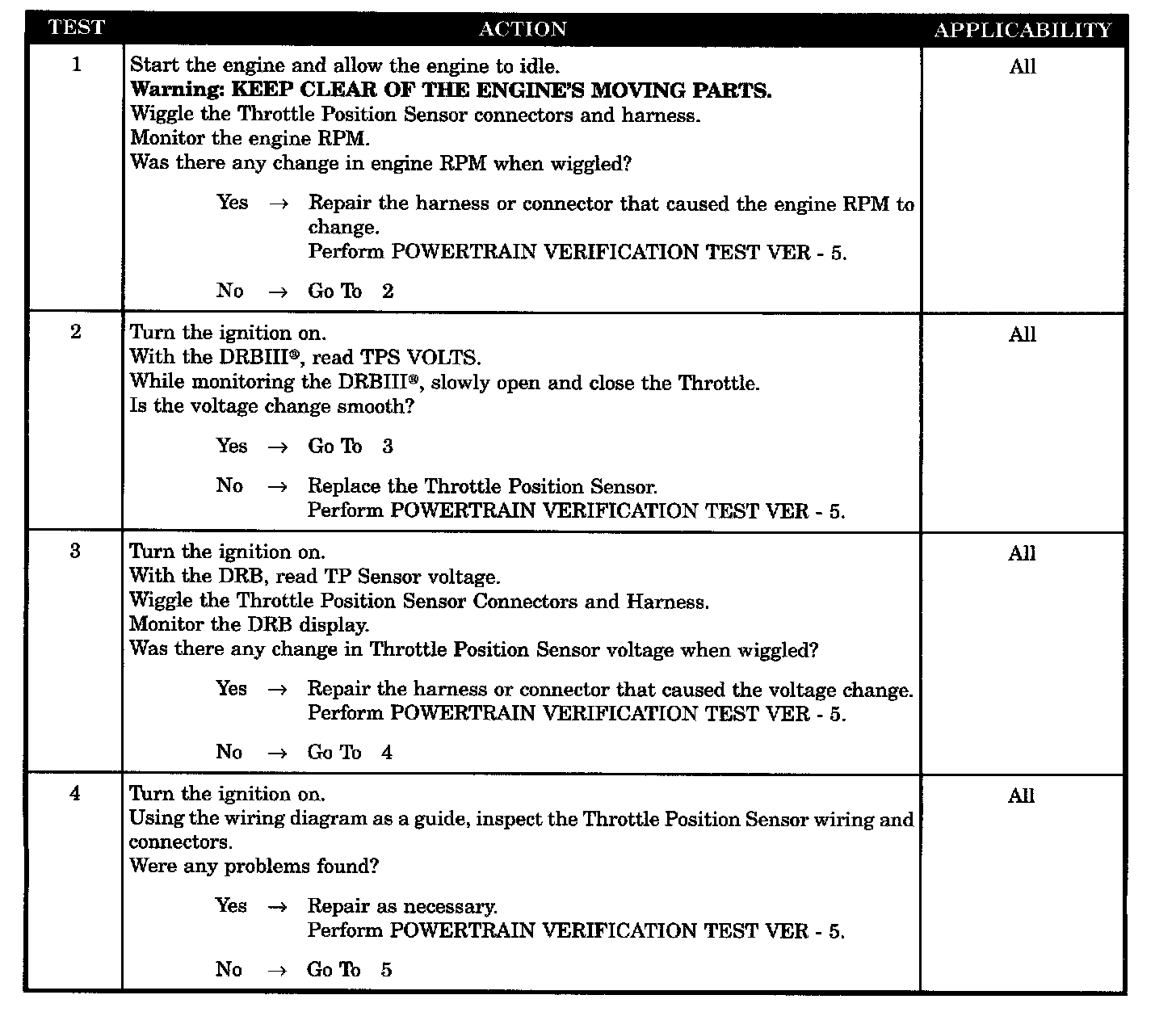 CHECKING THROTTLE POSITION SENSOR OPERATION WITH NO DTC'S