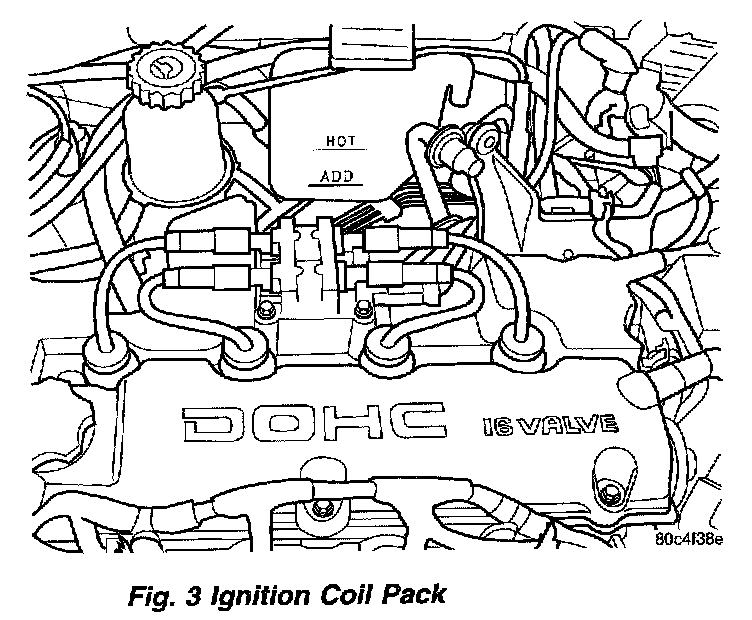 The coil pack consists of 2 coils molded together. The coil pack is mounted on the valve cover.