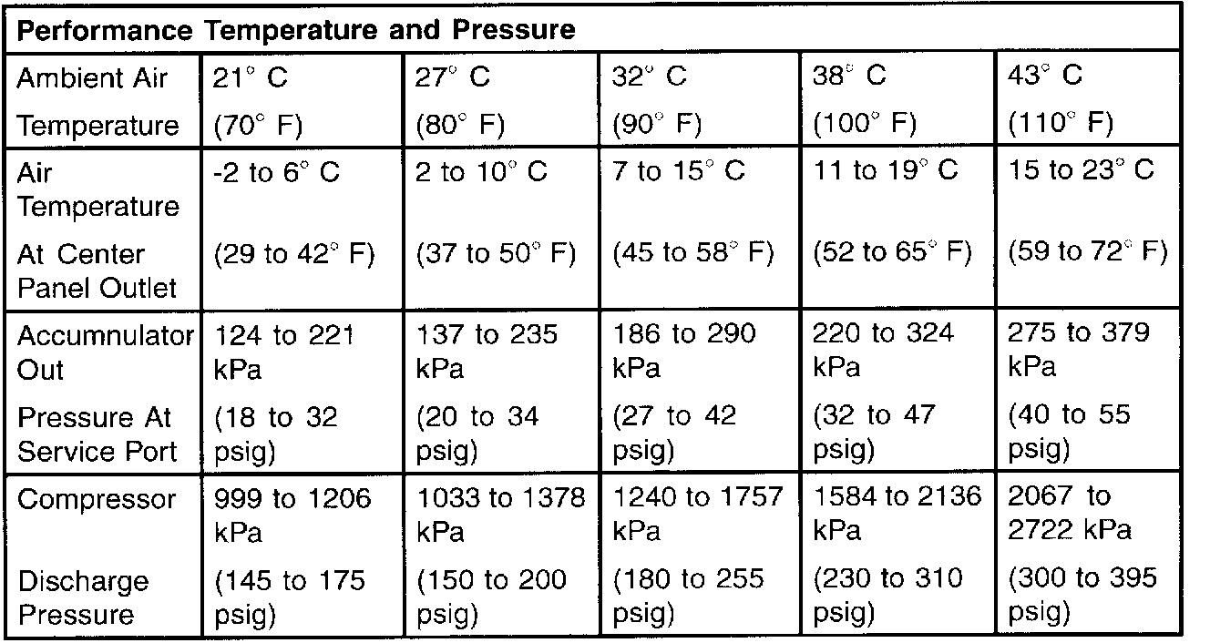 A/C PERFORMANCE TEMPERATURES