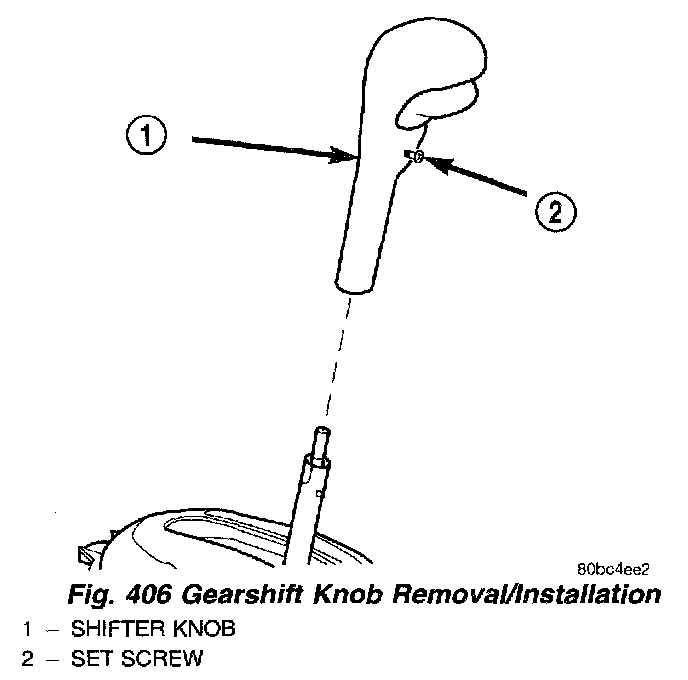 1. Loosen set screw and remove knob from shifter handle (Fig. 406).