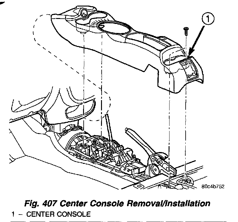 2. Remove the center console assembly as shown in (Fig. 407).