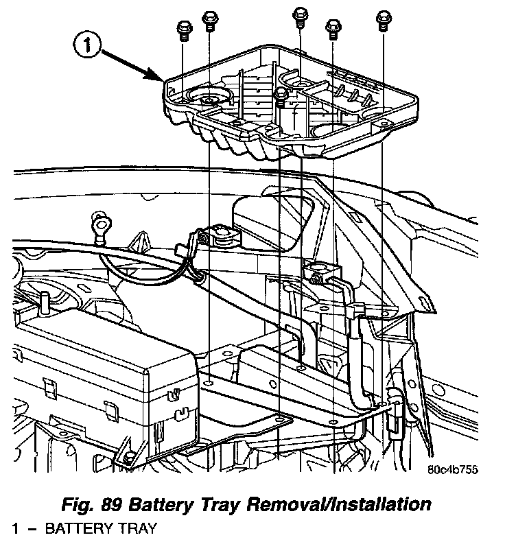 3. Remove the battery hold down clamp and remove the battery (Fig. 88).