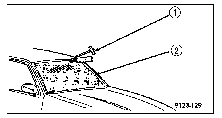 6. Using a sharp cold knife (1), cut urethane adhesive holding the windshield to the A-pillars, roof header and cowl pinch weld fences. A power cutting device can be used if available.