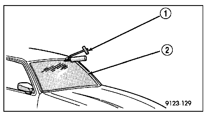 9. Apply a bead of urethane (4) on windshield glass as indicated.
