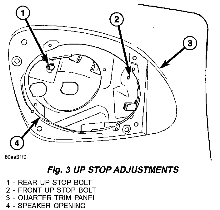 5. Slide up-stop to achieve proper glass to weatherstrip retainer gap. (Fig. 4)
