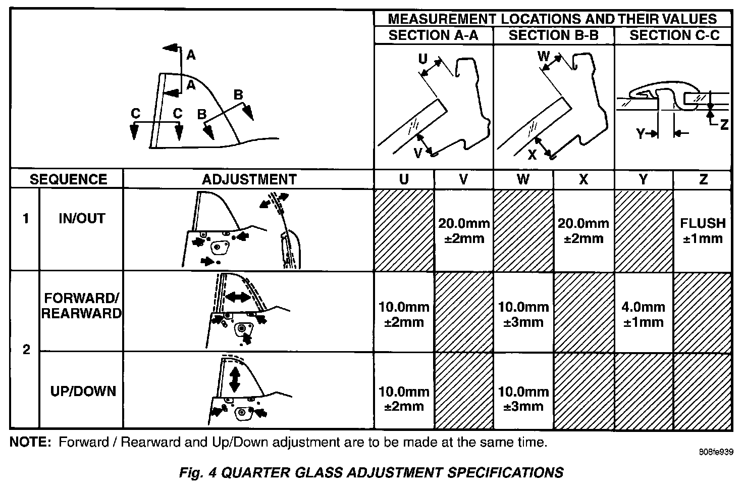 QUARTER GLASS ADJUSTMENTNOTE: The door glass must be properly adjusted prior to performing any quarter glass adjustments.