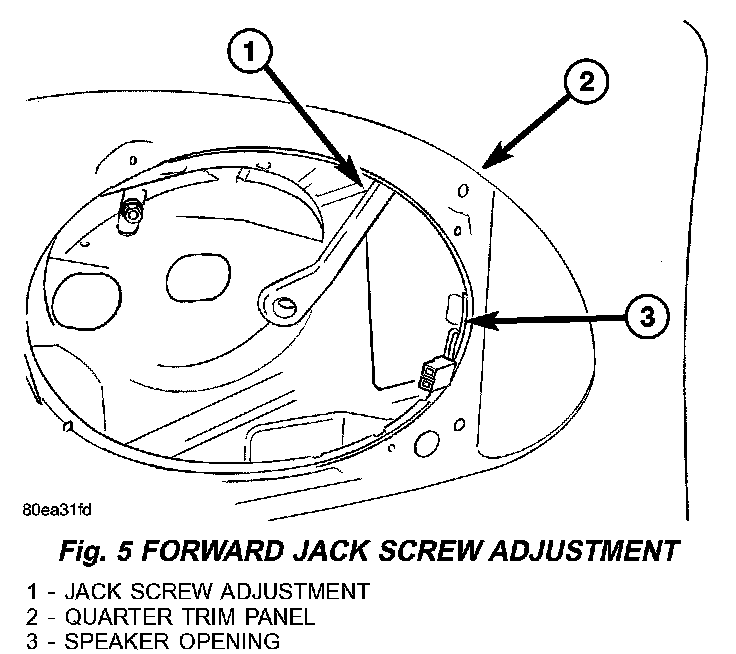 NOTE: Alternatively, the lower adjustment can be accessed through a hole at the bottom of the quarter trim panel. This hole can be located by removing the rear seat cushion.