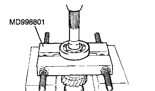 1. Using special tool MD998801, support the ball bearing, and then set them on the press.