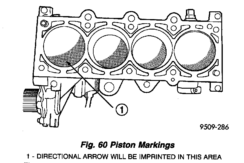 4. The directional stamp on the piston should face toward the front of the engine (Fig. 60).