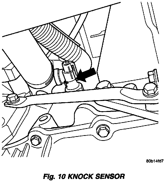 1. Install knock sensor. Tighten knock sensor to 10 Nm (7 ft. lbs.) torque. Over or under tightening effect. knock sensor performance, possibly causing improper spark control.