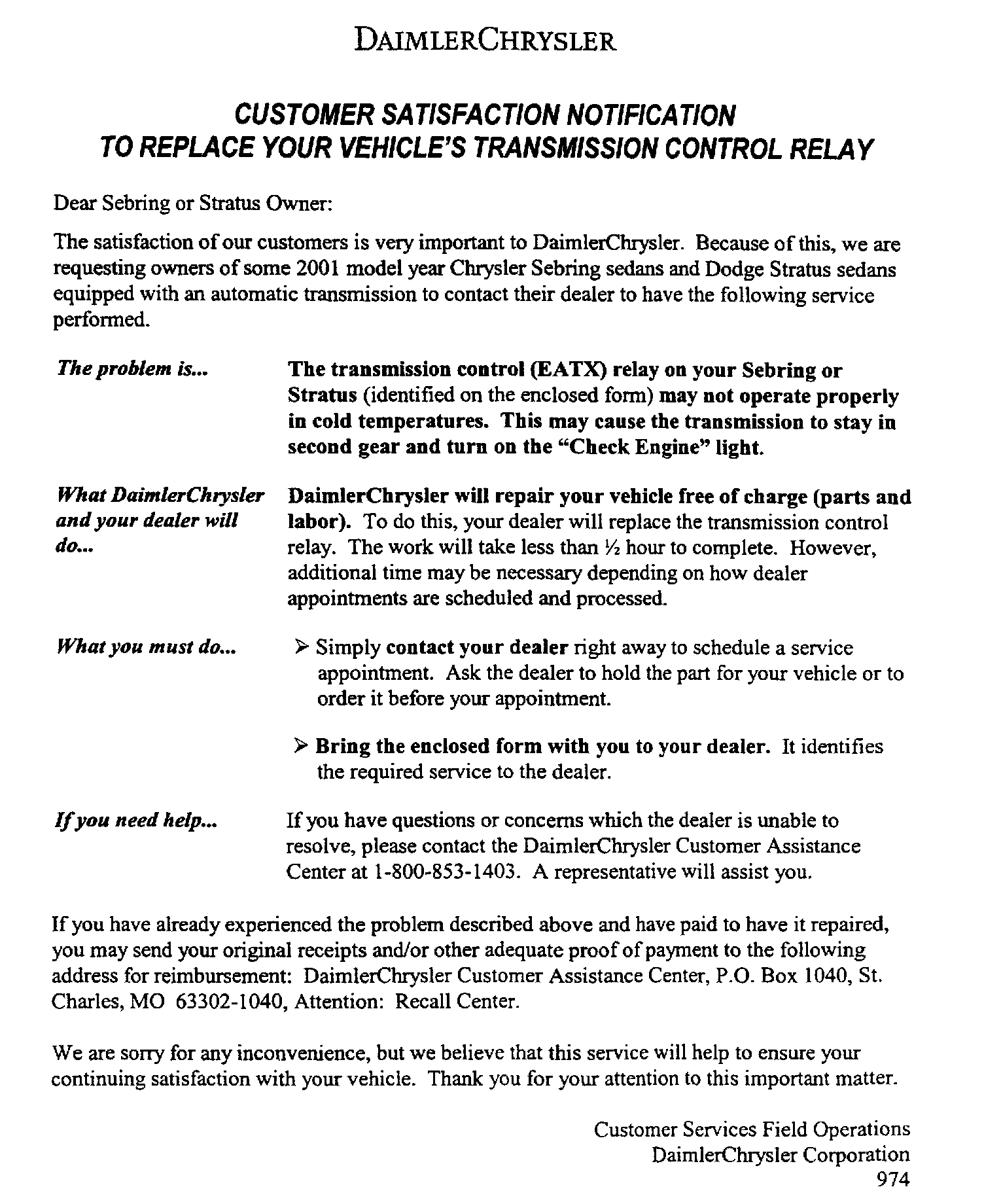 Campaign - A/T Control Relay Replacement