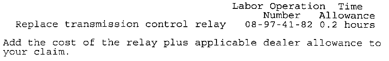 The transmission control (EATX) relay on about 16,800 of the above vehicles may not operate properly in cold temperatures. This may cause the transmission to stay in second gear and turn on the "Check Engine" light.