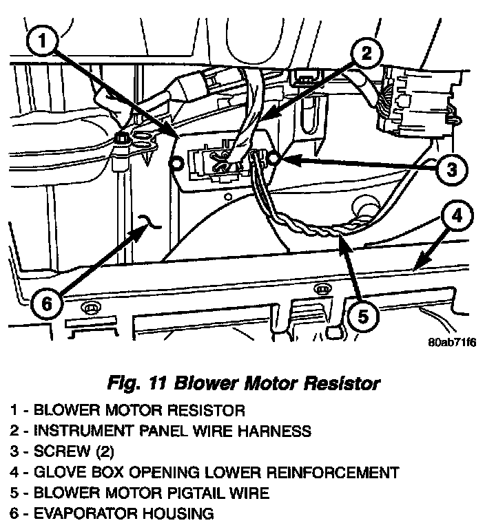 6. Remove the two screws that secure the blower motor resistor to the evaporator housing.