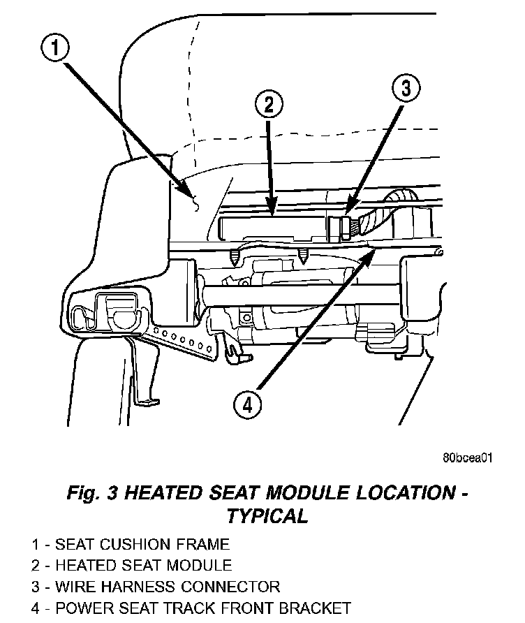 Fig. 3 Heated Seat Module Location - Typical: