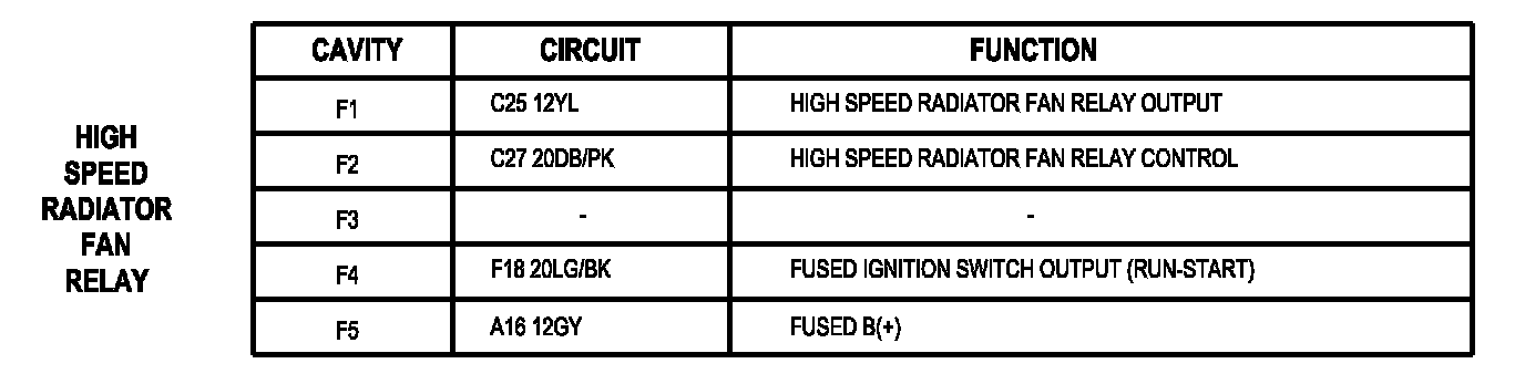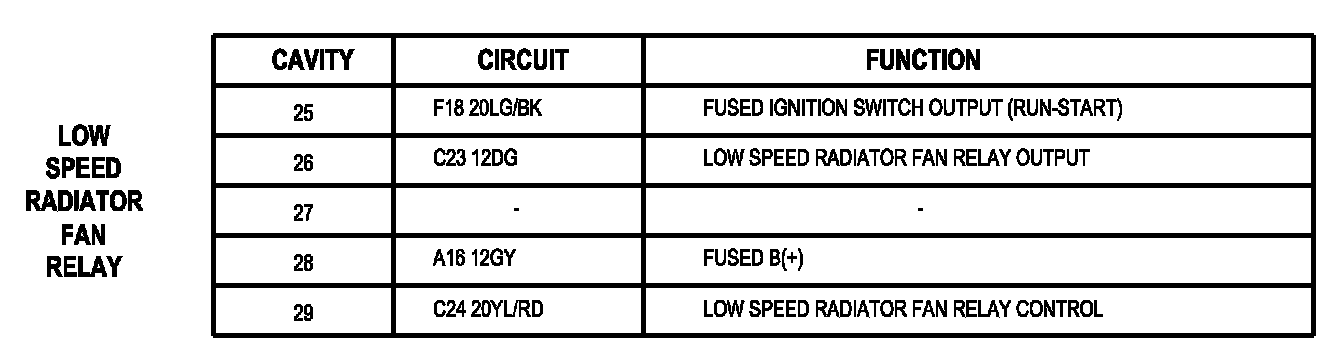 Low Speed Radiator Fan Relay: