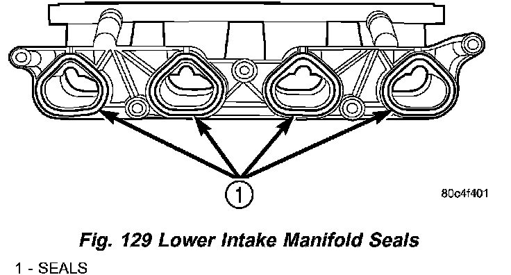 2. Position new seals on lower intake manifold, if replaced (Fig. 129).