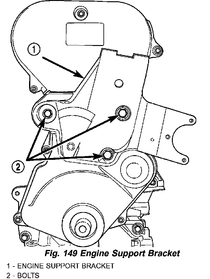 17. Raise engine with jack until engine support bracket bolts are accessible (Fig. 149).