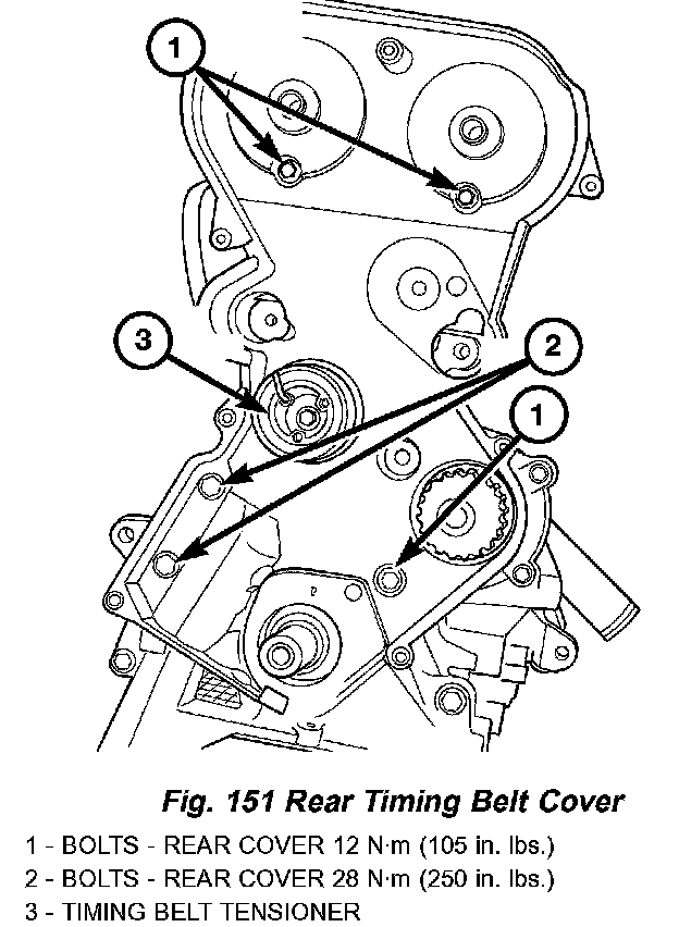 19. Remove timing belt cover fasteners and remove cover (Fig. 148).