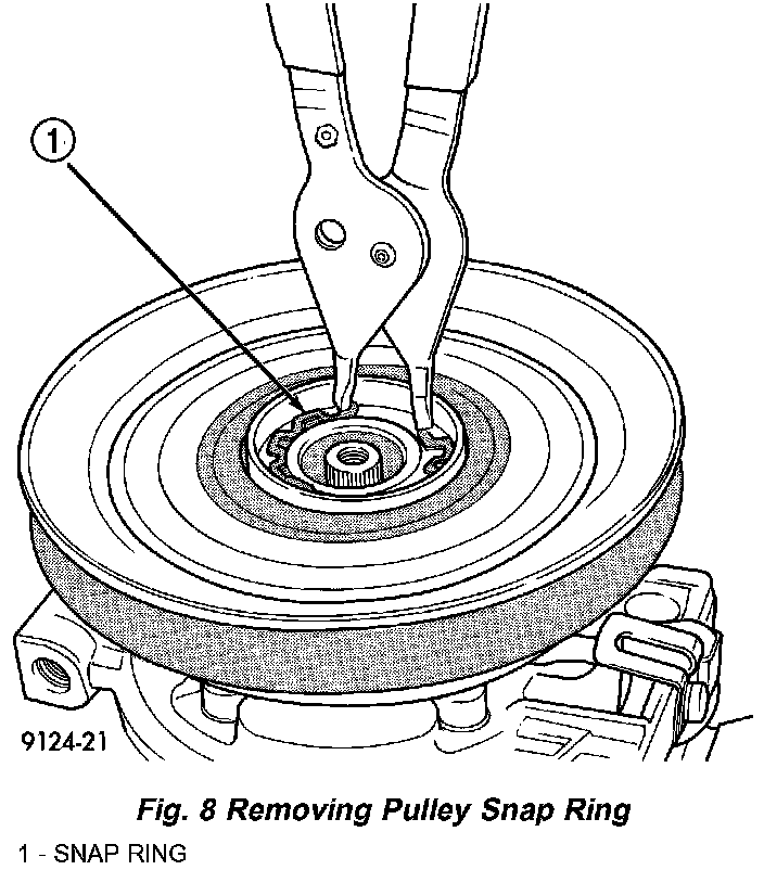 3. Remove pulley retaining snap ring with Snap Ring Pliers, and slide pulley assembly off of compressor.