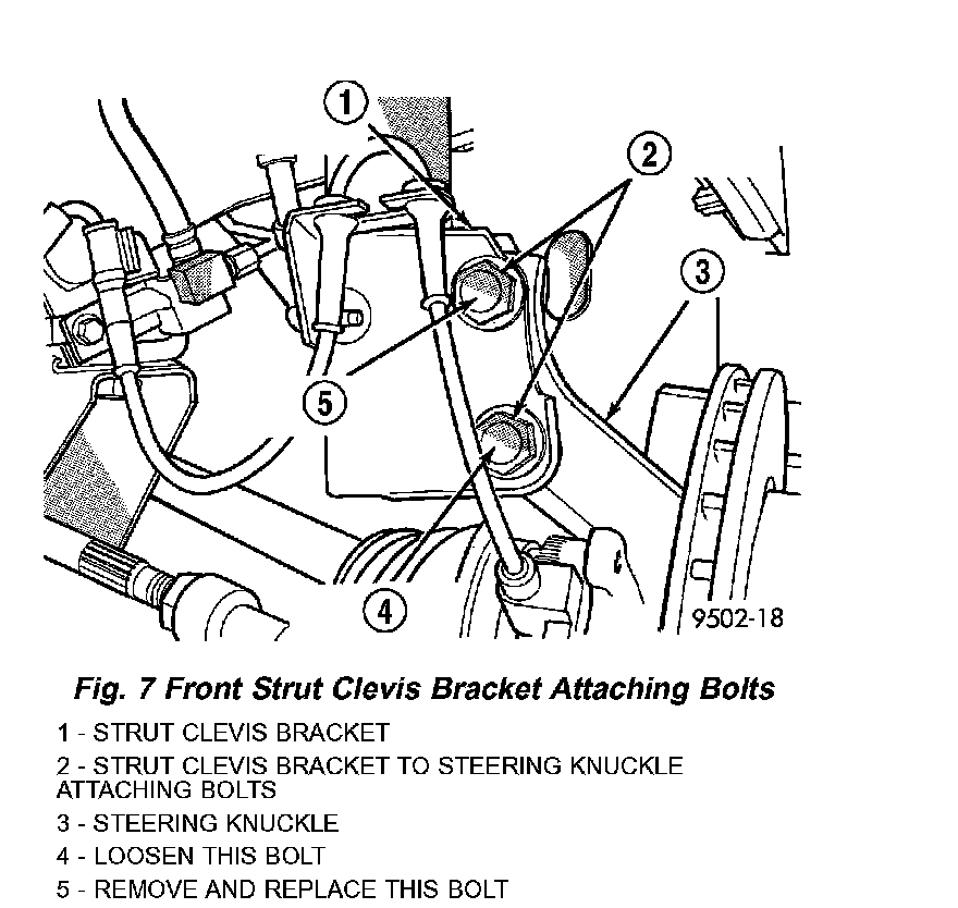 2. Remove the original upper bolt attaching the strut clevis bracket to the knuckle.