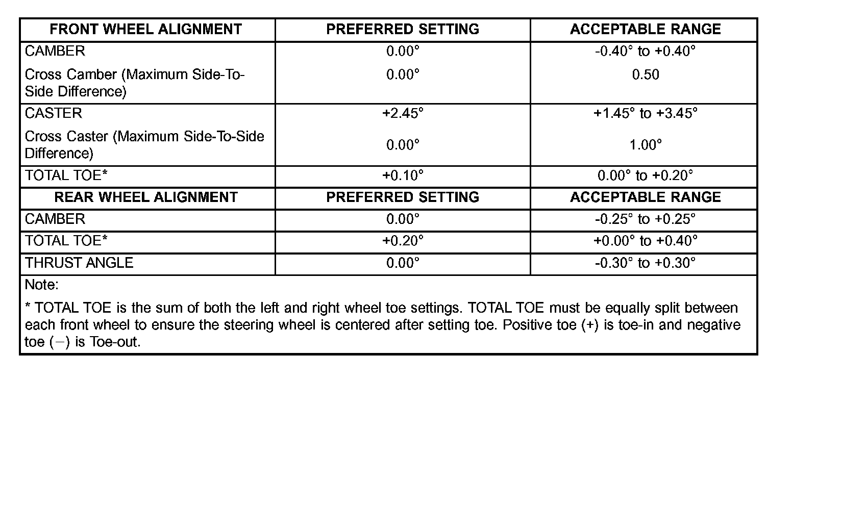10. Once rear camber and toe have been set to specifications, check and adjust the front wheel alignment as necessary.