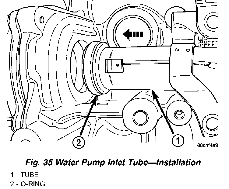 2. Lubricate O-ring with Mopar Dielectric Grease and install inlet tube into the cylinder block opening.