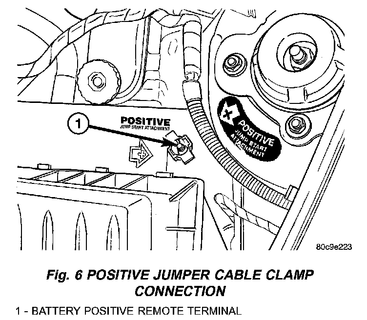 Fig. 6 Positive Jumper Cable Clamp Connection: