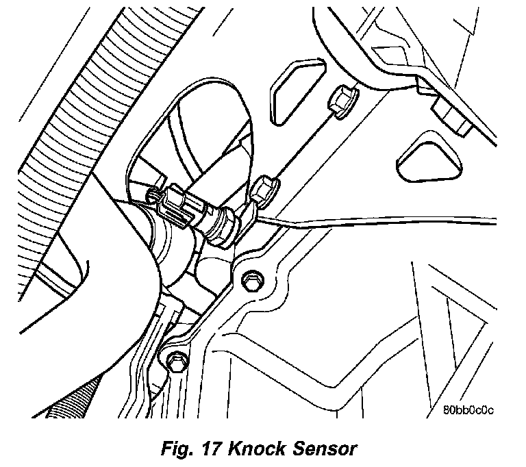 The knock sensor threads into the side of the cylinder block in front of the starter.