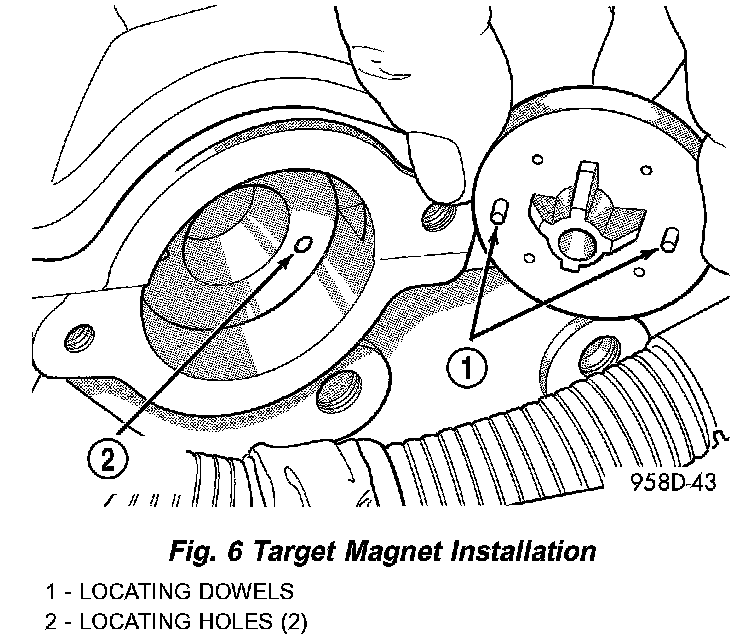 The target magnet has locating dowels that fit into machined locating holes in the end of the camshaft.