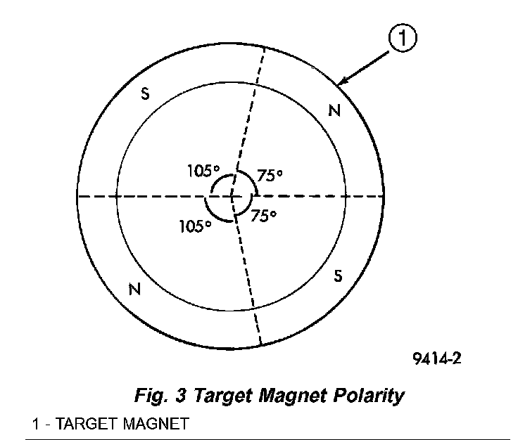 A target magnet attaches to the rear of the camshaft and indexes to the correct position. The target magnet has four different poles arranged in an asymmetrical pattern. As the target magnet rotates, the camshaft position sensor senses the change in polarity.