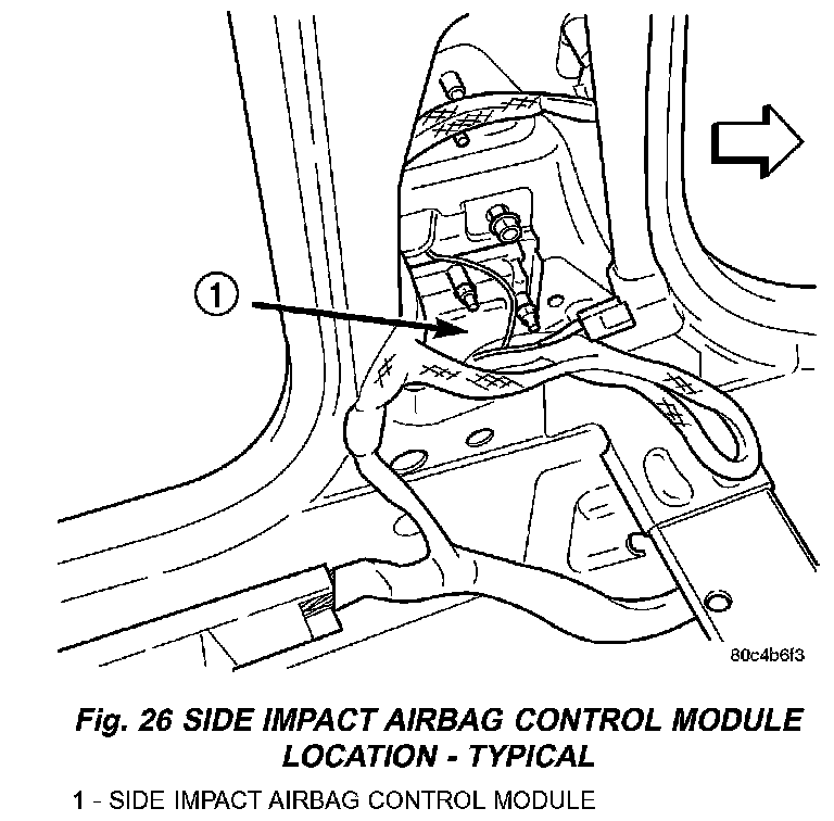 Fig. 26 Side Impact Airbag Control Module Location - Typical: