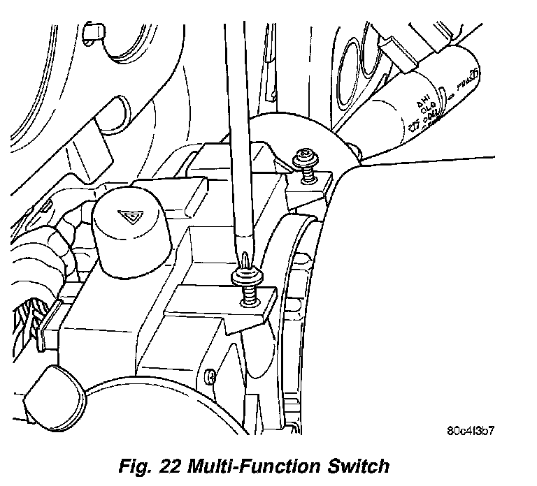 6. Remove the 2 screws on the top of the multifunction switch and relocate (Fig. 22).