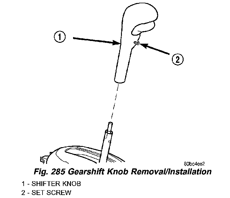 2. Loosen set screw and remove knob from shifter handle (Fig. 285).