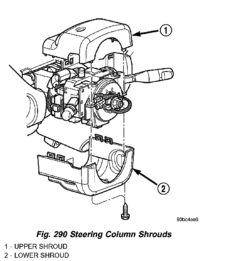 6. Install steering column upper and lower shrouds (Fig. 290).