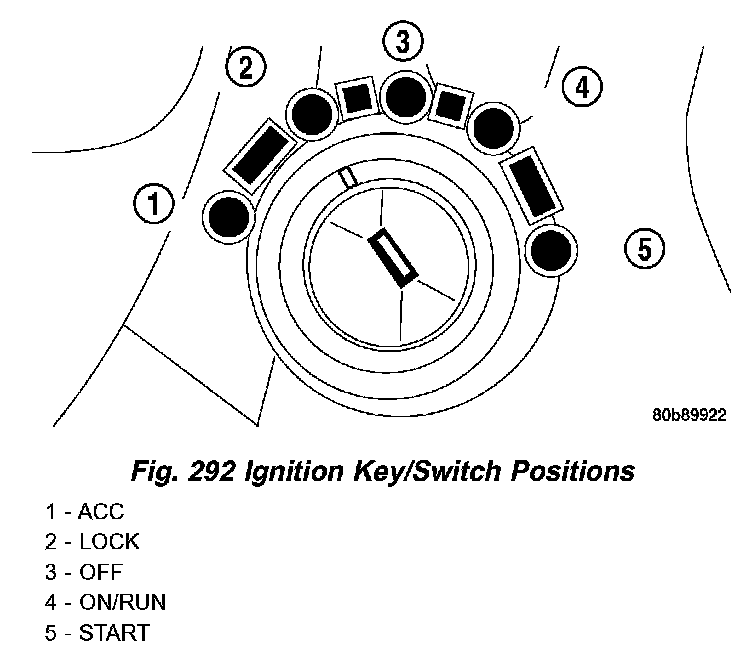 2. Turn the ignition key to the "OFF" or "ON/ RUN" position (Fig. 292).