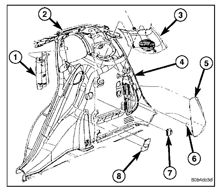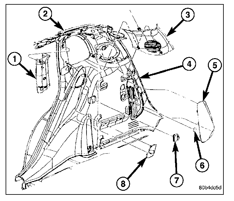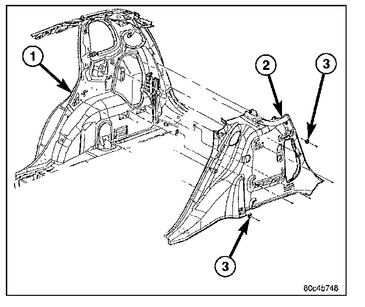 6. Install lower quarter trim (4), and C & D-Pillar trim.
