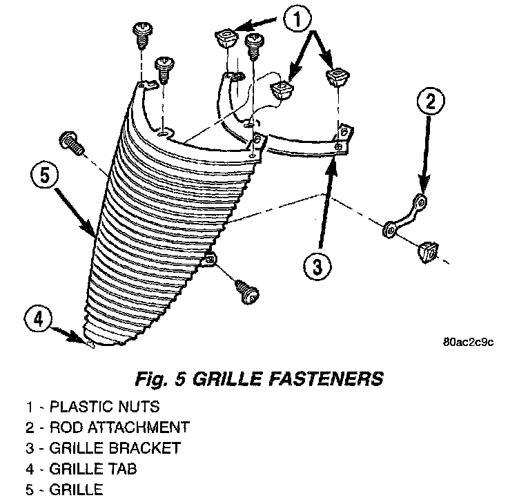 2. Remove screws attaching grille bracket to front structure (Fig. 5).