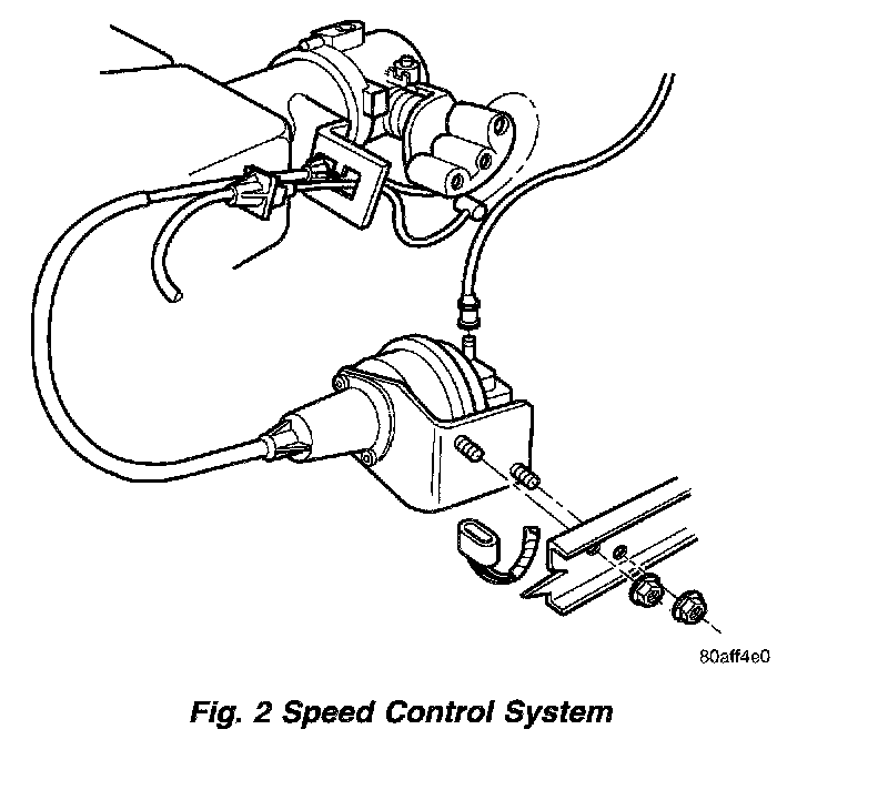 3. Remove two nuts attaching speed control cable and mounting bracket to servo.