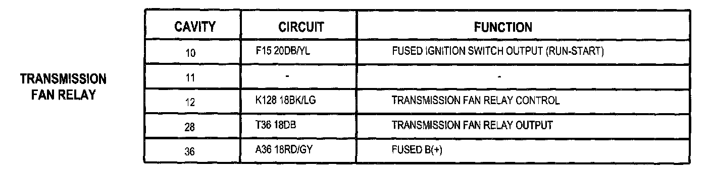 Transmission Fan Relay: